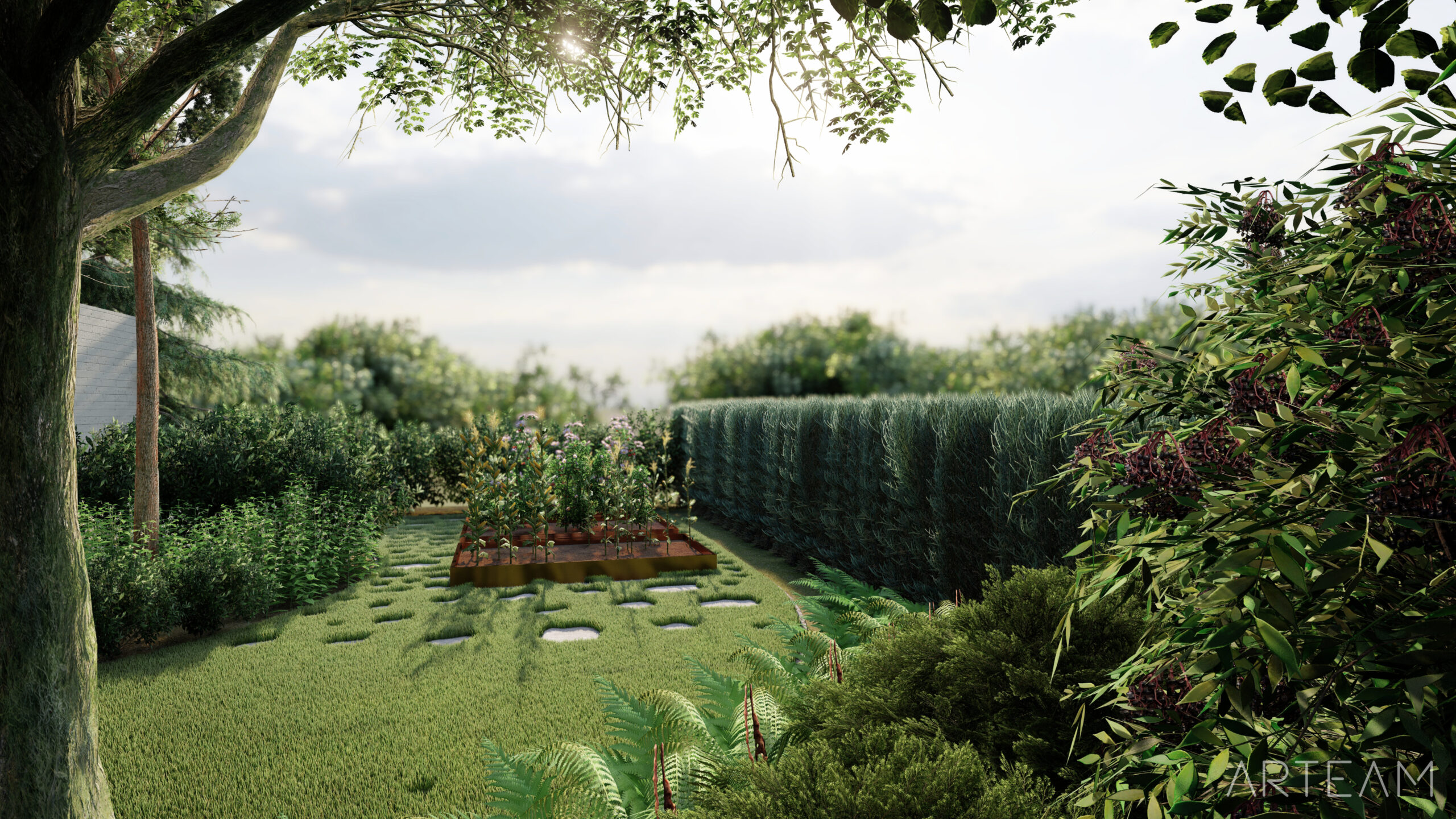 Głównym założeniem koncepcji było nadanie nowego, funkcjonalnego kształtu ogrodu.