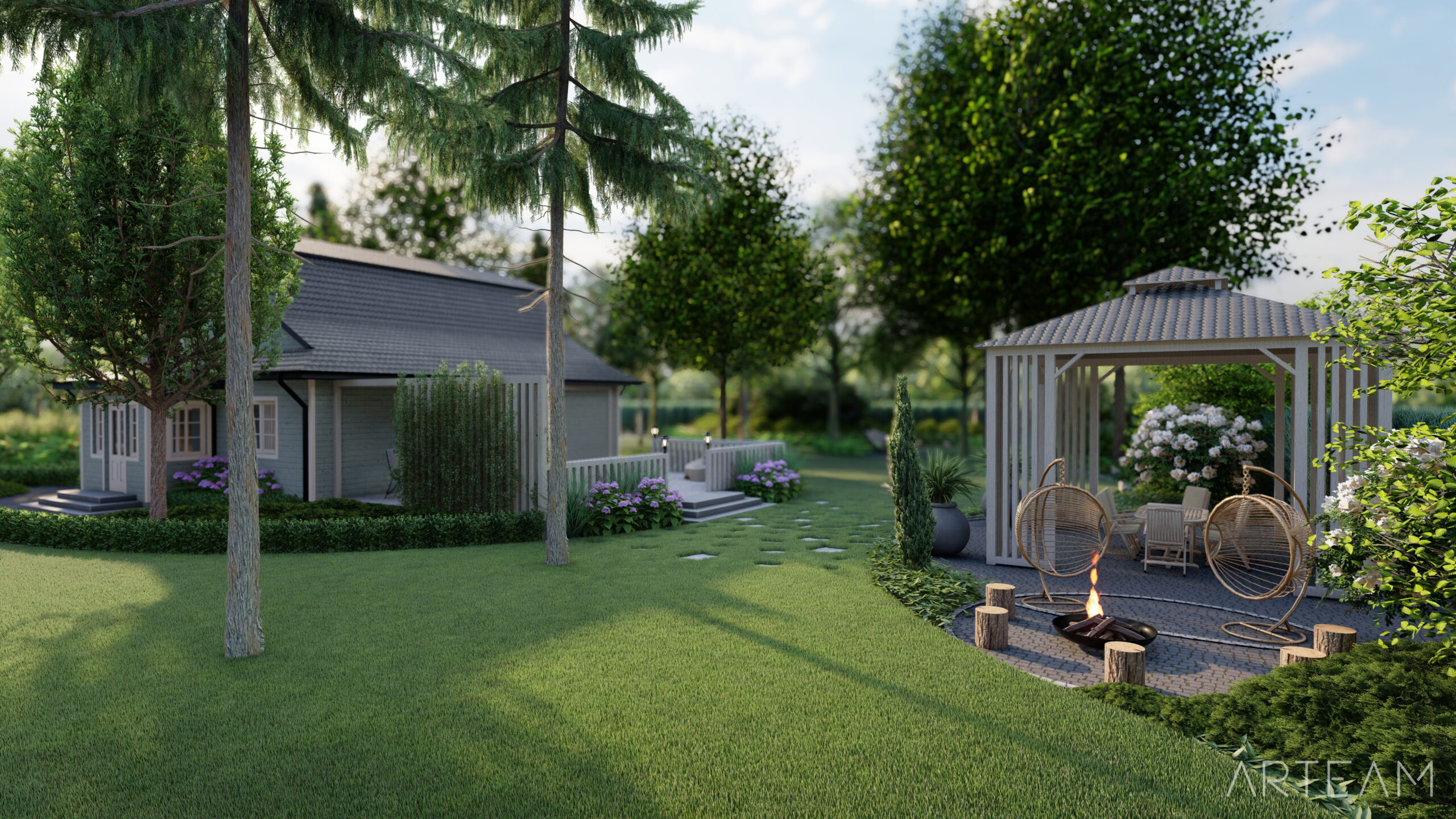 Istotnymi wprowadzonymi elementami są także dodatkowe nasadzenia oraz miejsca wypoczynkowo- rekreacyjne takie jak palenisko, altana czy hamaki wśród drzew. ![]()