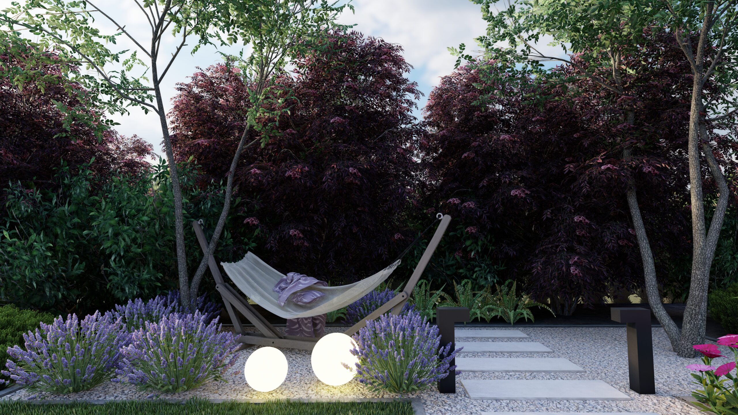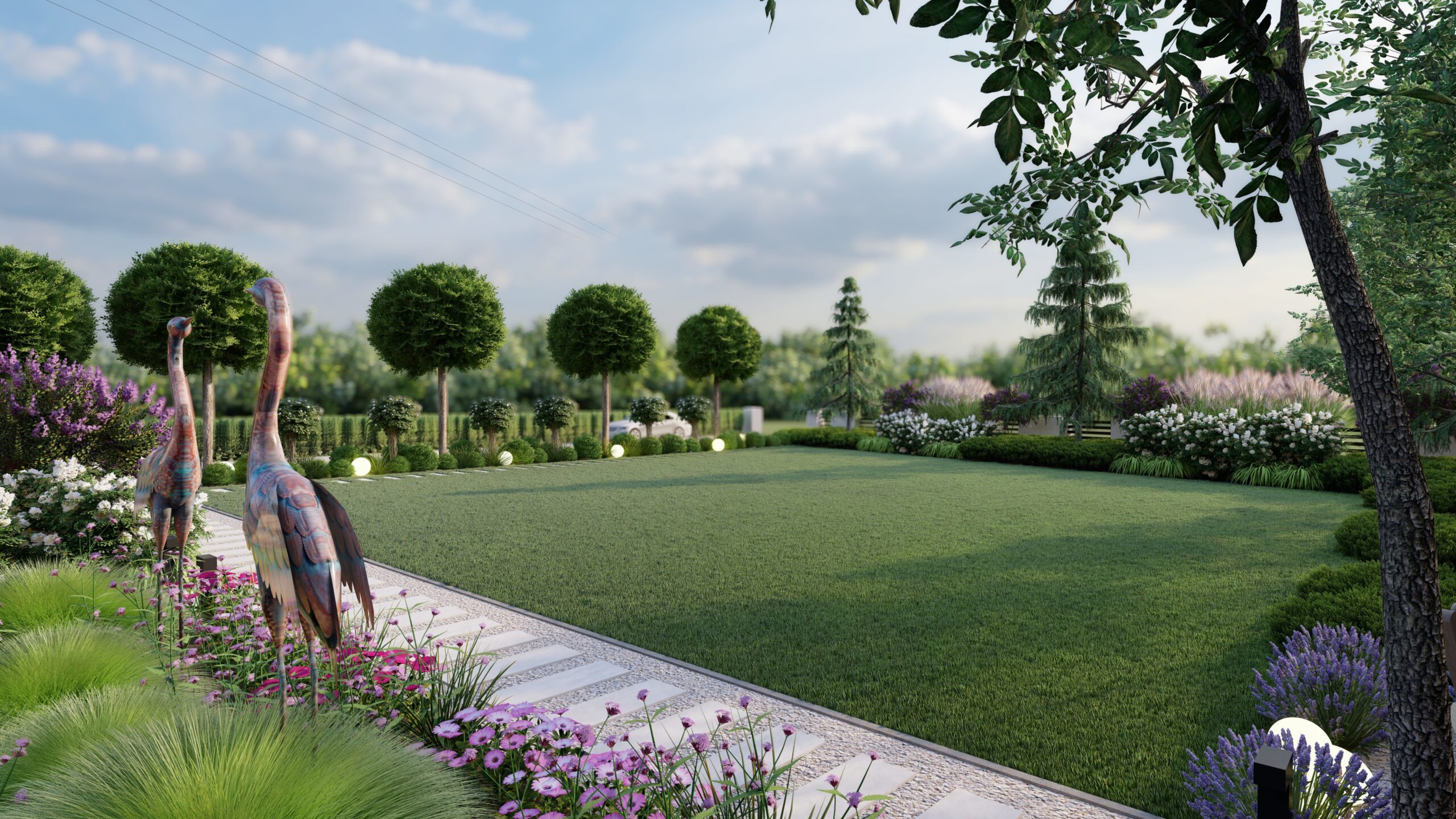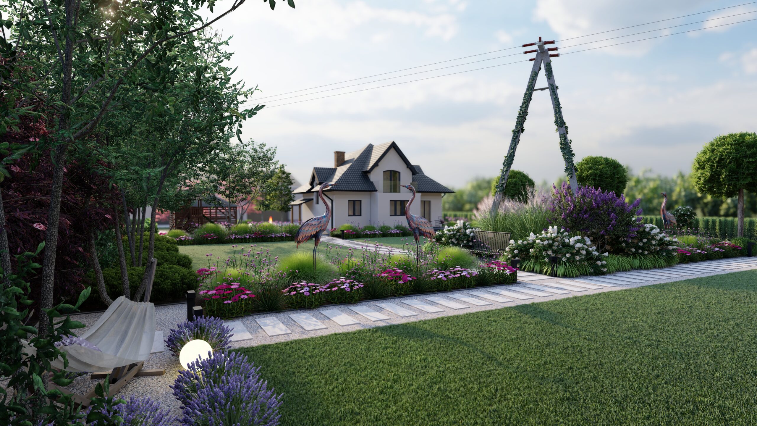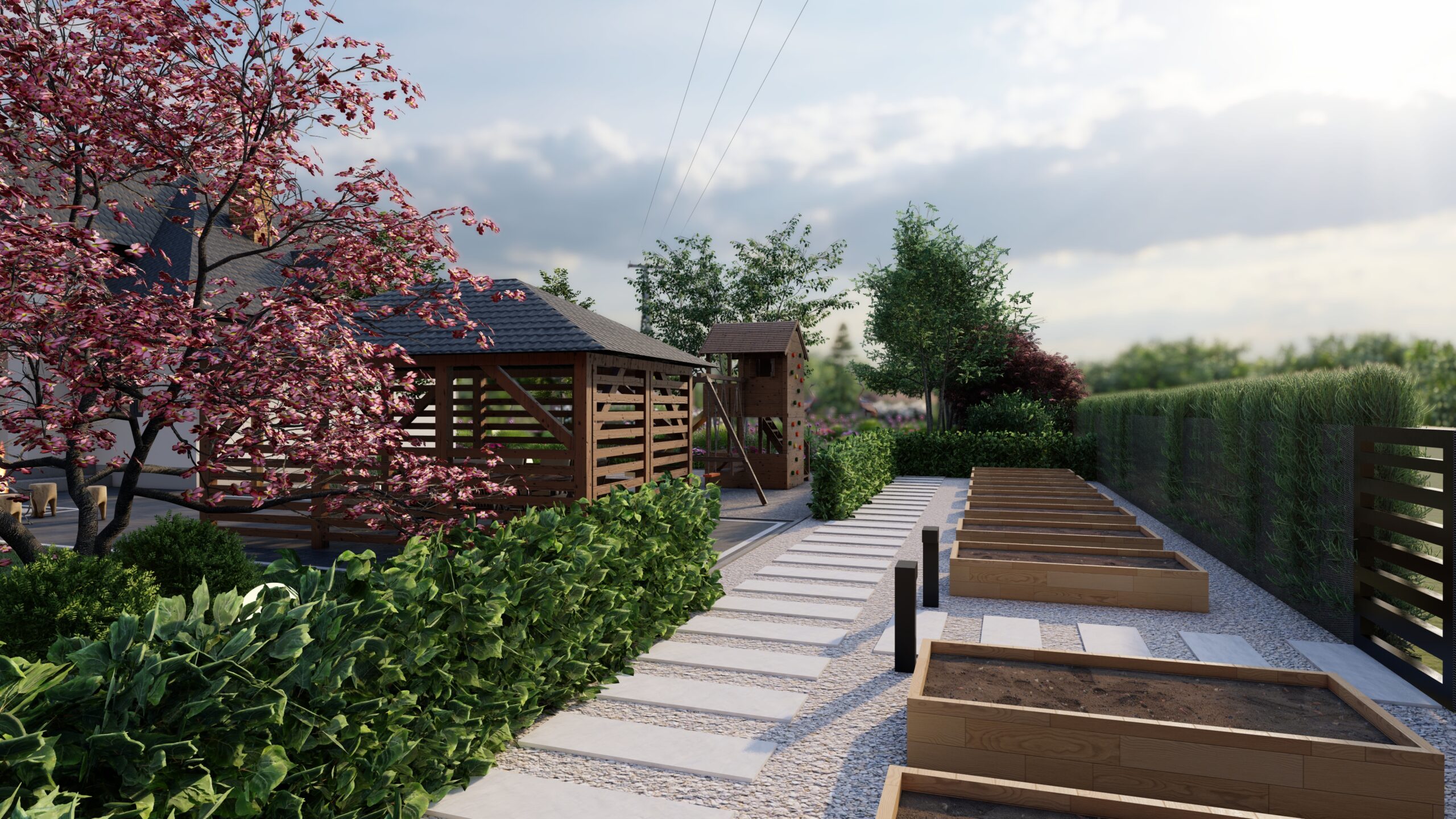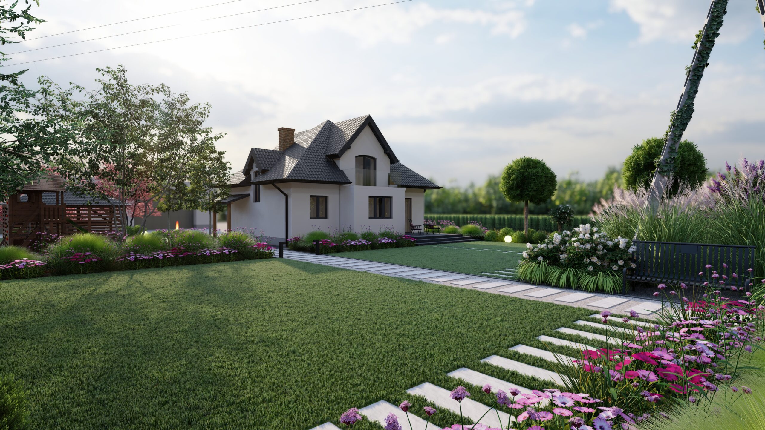 PROJEKT OGRODU PRZY DOMU JEDNORODZINNYM WRAZ Z WIZUALIZACJIAMI W JAROSZEWICACH
